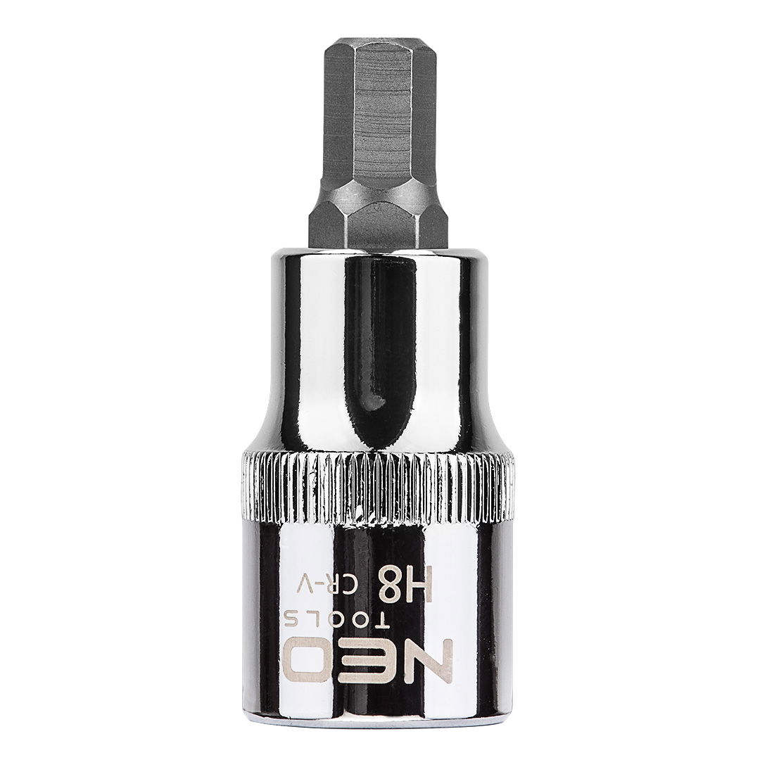 NEO 1/2"-os Imbusz bit dugókulcs, 55 mm hosszú, a DIN 7422 szabványnak megfelelő. A dugóadapter nagy ellenállóképességű króm-vanádium acélból készül. A hatlapú bit kiváló minőségű S2 acélötvözetből készül. A szerszám minőségét bizonyítja a TÜV tanúsítvány és a gyártó által nyújtott 25 éves jótállás. A NEO márka a professzionális igényeket is kielégíti.