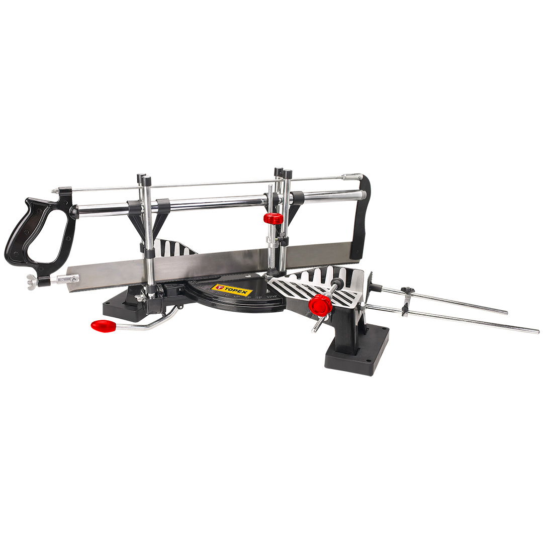 TOPEX gérvágó fűrész 550 mm-es fűrészlappal. Gérládán beállított 45° és 135° szögű vágások elvégzésére szolgál. Alumíniumból készült, így könnyű, és használata kényelmes. A műanyagból készült markolat jól fekszik a tenyérben, növelve a munkavégzés kényelmét. A TOPEX márka ezermestereknek készül.