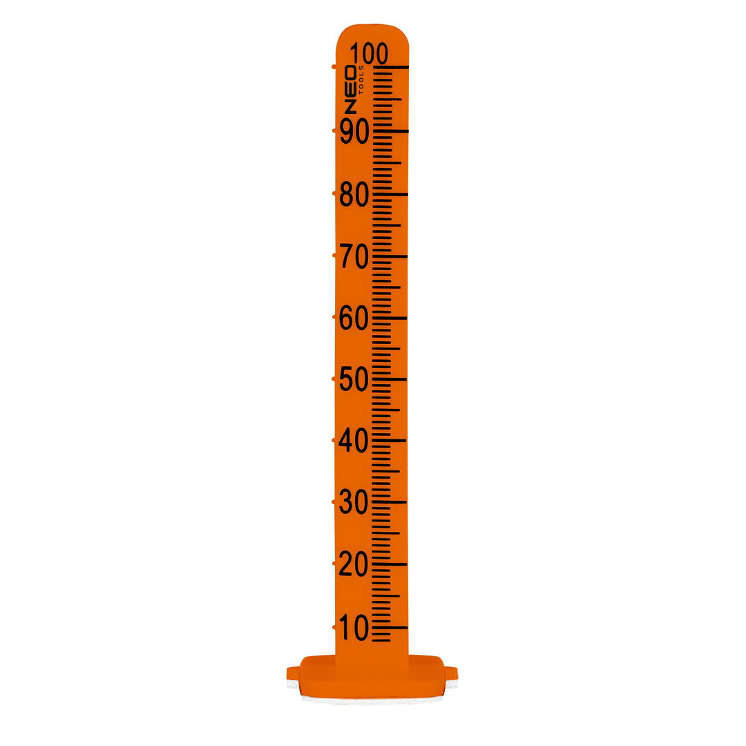 NEO 50-430 szintezőtalp aljzatkiegyenlítéshez.PE, 100 mm/ 20 darab, öntapadós 3M szalaggal ellátott. Az egyik oldalon nyomtatott, a másikon gravírozott skálával. A tervezett esztrich szintjét először vízmértékkel, szintező lézerrel vagy más szintezőeszközzel kell megállapítani. Az aljzatot alaposan elő kell készíteni, pl. alapozással, majd talpakat úgy kell elhelyezni, hogy az esztrich pontosan kiönthető legyen. Miután az alátéteken (vízmérték vagy lézer segítségével) meghatároztuk a megfelelő szinteket, a felesleget levágjuk, és az esztrichet a vágott szintre öntjük. Professzionális és hobbi használatra.