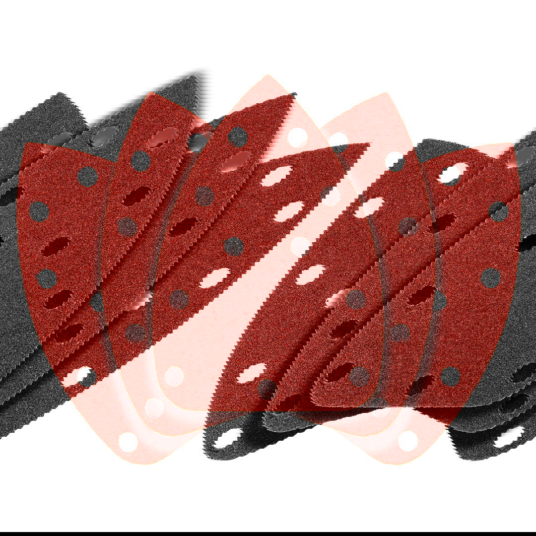 Tépőzáras csiszolópapír delta 140 x 140 x 80 mm, K 40, 5 db. 54H009 GRAPHITE 140x140x80 mm-es méretű. A 40-es szemcsenyagyságú, és delta rezgőcsiszolókhoz (pl. GRAPHITE 59G336 csiszológép) tervezték. A papír használata fához, fémhez és műanyaghoz ajánlott. A tépőzáras rögzítés megkönnyíti a hatékony és gyors cserét. A papír porelszívó lyukakkal rendelkezik, így kényelmes pormentes munkavégzést és ezáltal hatékonyabb csiszolást biztosít az anyag túlmelegedése nélkül. Az 5 darab 140x140x80 mm-es csiszolópapír-készletet profiknak és tapasztalt barkácsolóknak ajánljuk.