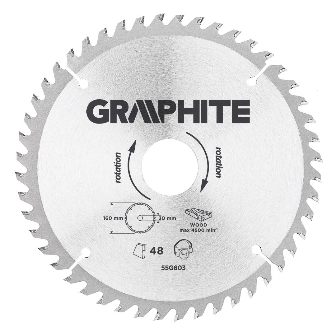 A GRAPHITE keményfém lapkás fűrésztárcsa a hőmérsékletnek és a deformálódásnak igen ellenálló MN65-ös mangán acélötvözetből készül. Az YG6A keményfém lapkás (vídiabetétes) fogazás lehetővé teszi a fa és fa alapú anyagok, mint pl. a rétegelt lemez, a forgácslap vagy az MDF lapok nagyoló vágását. A csomagolásban megtalálható szűkítő gyűrűk lehetővé teszik a fűrésztárcsák alkalmazását a fűrészgép típusok többségéhez.