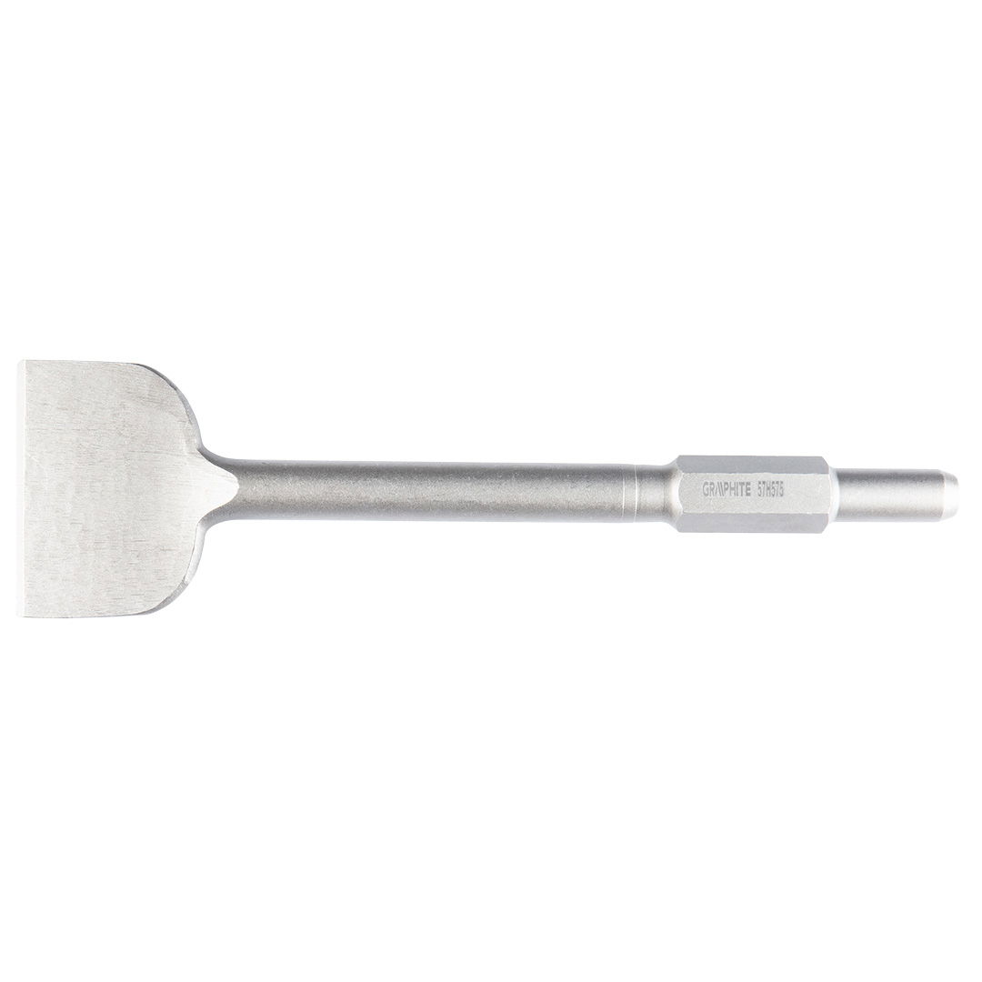 GRAPHITE HEX lapos véső (cikkszám: 57H575) 115 mm széles és 400 mm hosszú, olyan anyagok megmunkálásához, mint a beton, üreges blokkok, tégla és kő. Hasznos építési és bontási munkákhoz. Csempe- és vakolateltávolításhoz, kábelcsatornázáshoz és falbontáshoz használható.