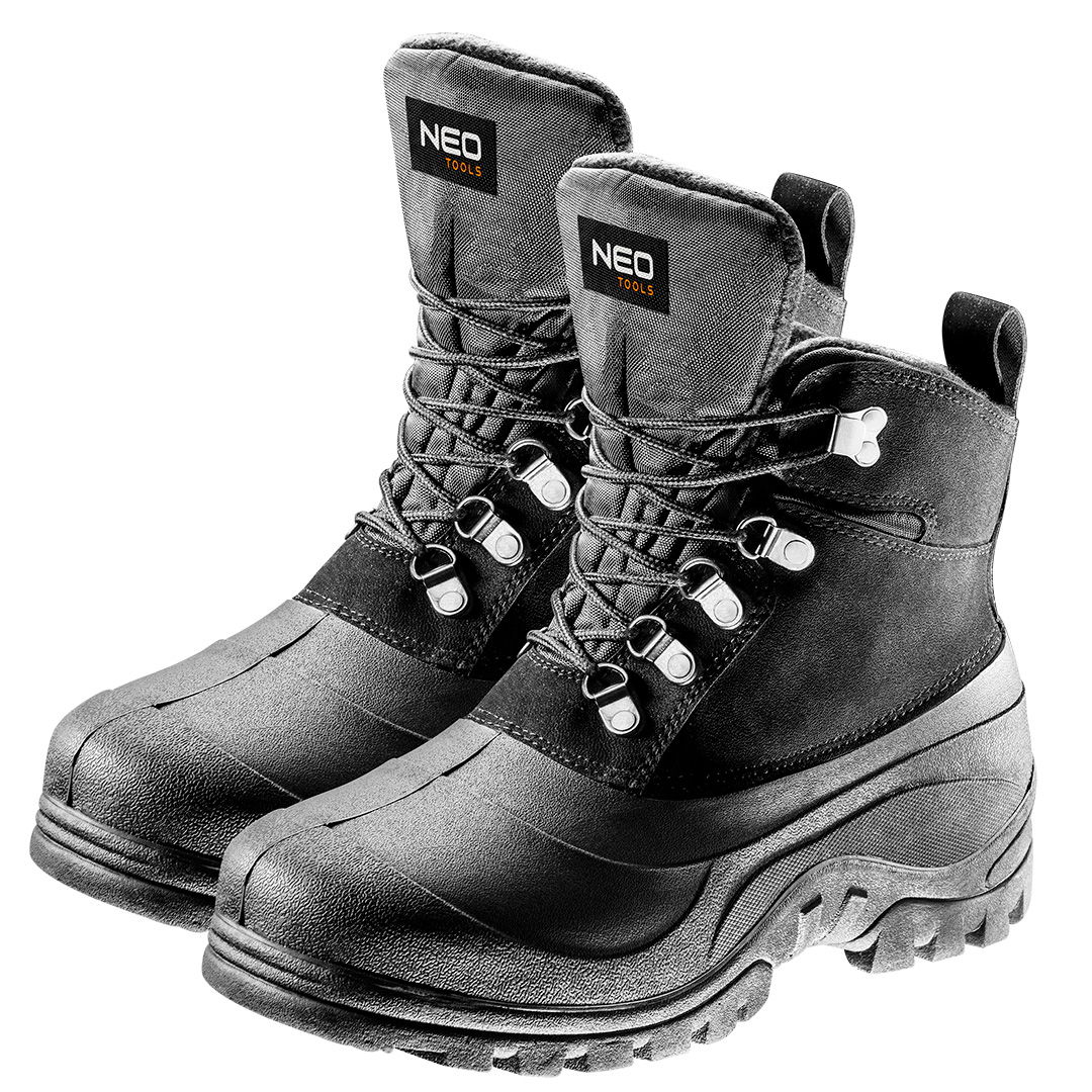 NEO Férfi téli munkabakancs-hótaposó nélkülözhetetlen felszerelés a téli szabadban végzett munkáknál. Az ökobőr és a kimagasló minőségű TPR gumi öntött talp garantálják a hő és a víz elleni védelmet. A meleg bélés biztosítja a felhasználó termikus komfortját, míg a csúszásgátló talp növeli a csúszós talajon a biztonságot. A NEO márka a professzionális igényeket is kielégíti.